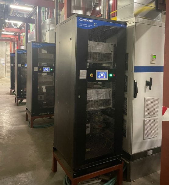 Para reducir los armónicos y minimizar sus efectos, una de las soluciones más eficaces es la instalación de Filtros Activos de Armónicos. Estos equipos leen en todo momento la corriente armónica en el sistema y generan una corriente opuesta que la cancela. Es capaz de mitigar los armónicos hasta orden 50.